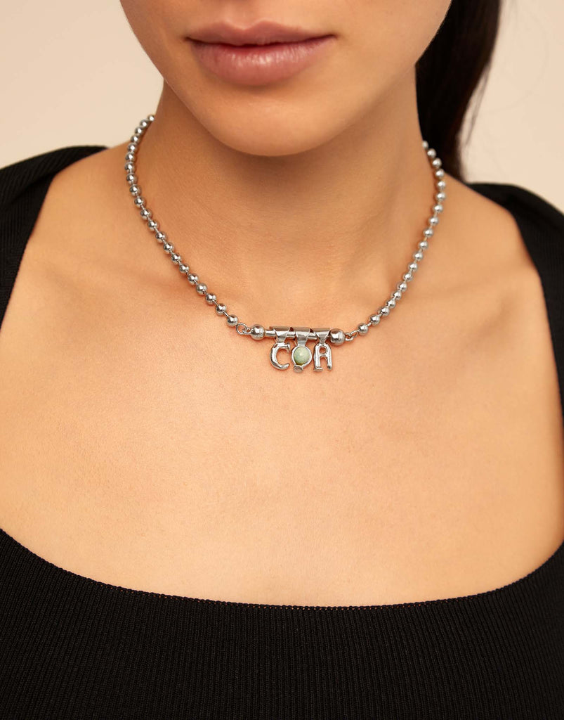 Colgante corto con cadena y charm en aleación de metales bañados en plata. Collar corto y flexible de diseño exclusivo, hecho de metal bañado en plata, ha sido elaborado en España siguiendo un proceso artesanal al 100% por UNOde50.