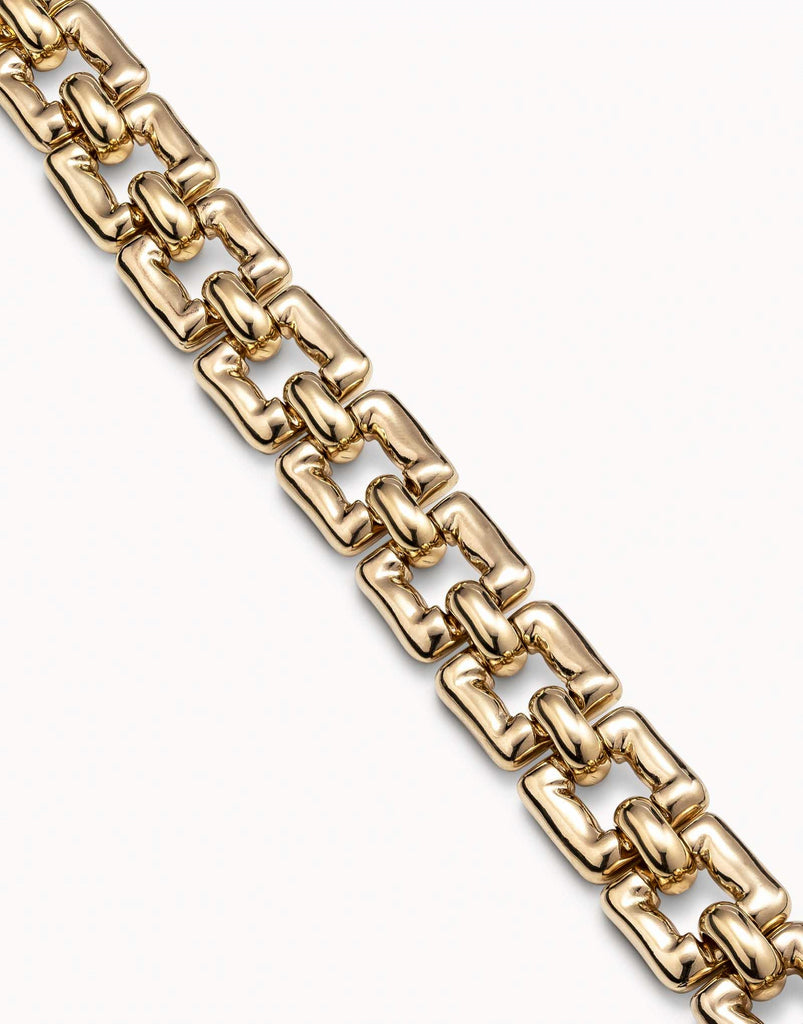 Pulsera de oro de eslabones cuadrados pequeño y cierre de mosquetón. Pulsera con diseño de eslabones cuadrados pequeños y con cierre de mosquetón.